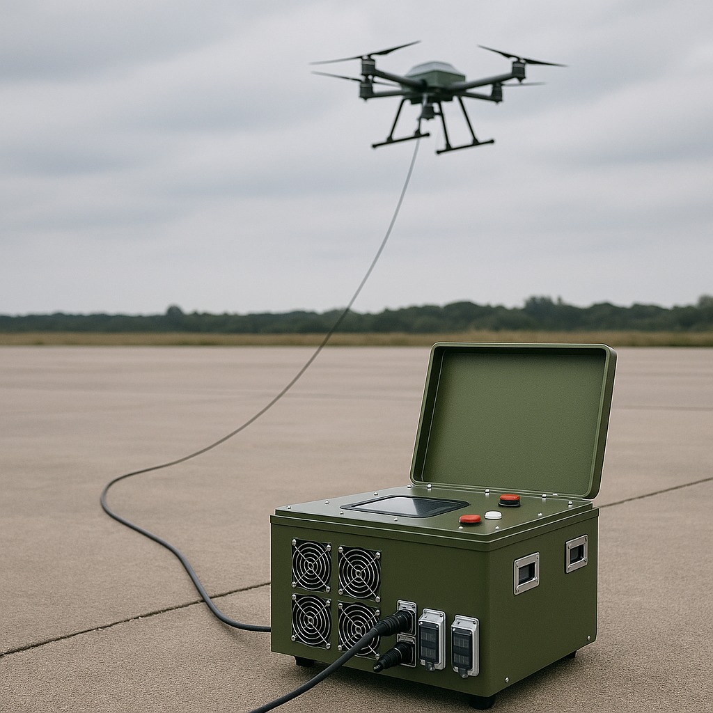 Tethered – wirtualny maszt radiowy (wysokość do 100 m, czas pracy >24 h, transmisja światłowodowa).
